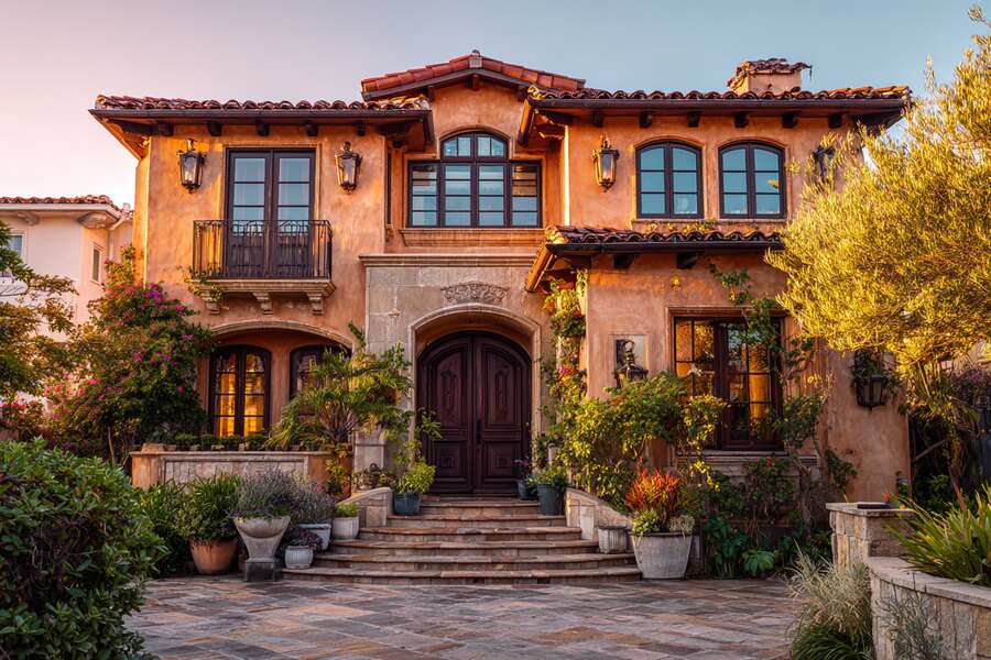 Mediterranean home exterior with Huntington Beach, CA window replacement upgrade